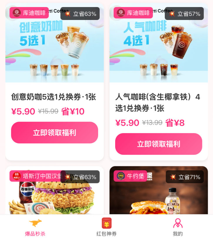 - 智能分类展示(外卖券、美食、酒店、门票等)。