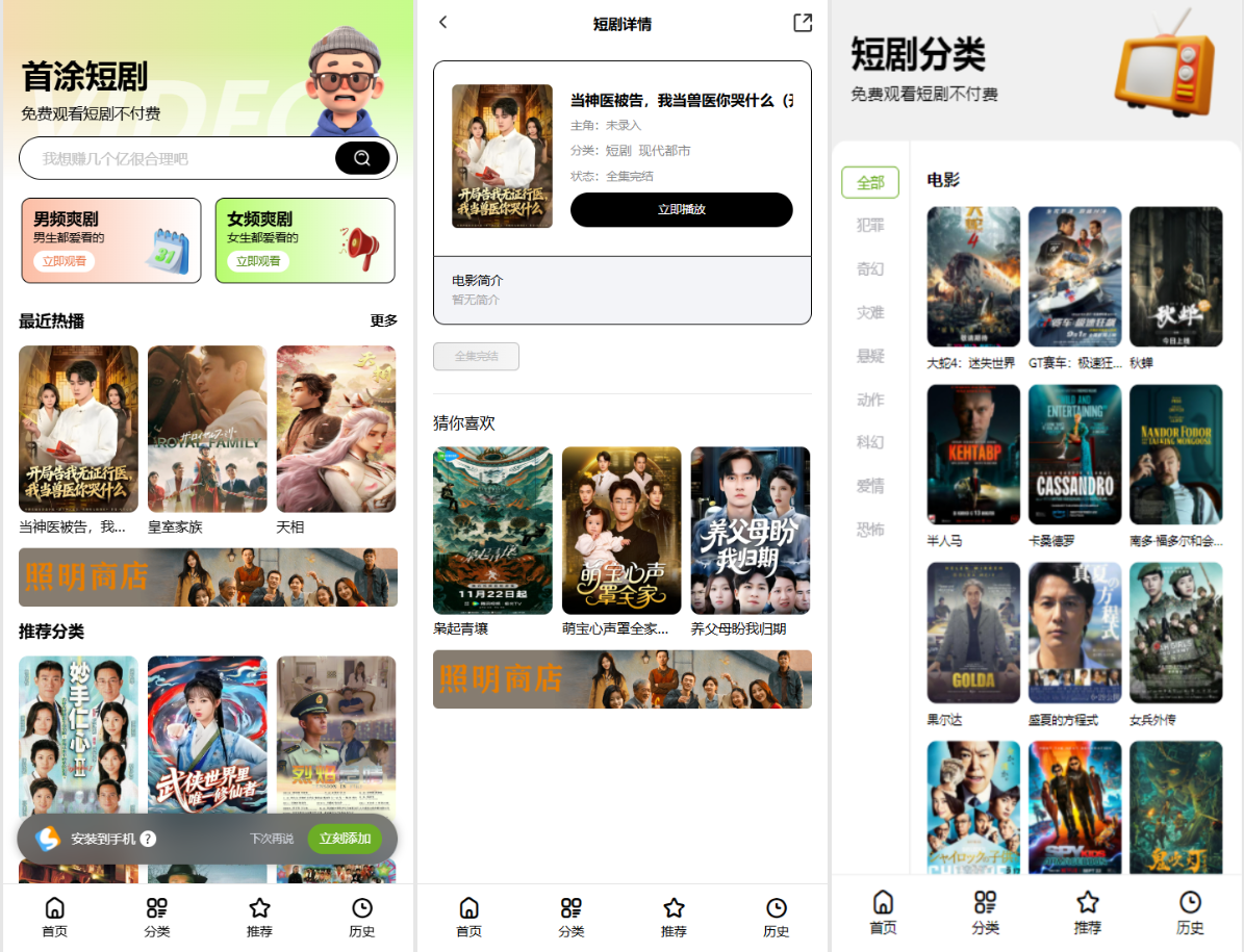 首涂第三十五套苹果CMSv10最新热门短剧模板,专为短剧打造。具备热门展示、简洁美观、高度自定义等特点,响应式设计适配多设备,优化性能加载快,易用性强,助您快速搭建专业短剧网站,提升影响力。