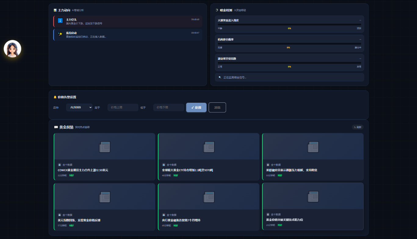 2026新版黄金价格监控系统,集成K线图、舆情分析、AI客服等功能,多数据源融合确保信息全面,智能预警实时推送异常波动,交易信号分析助力决策,全平台覆盖提供一致体验,数据可视化提升读取效率。