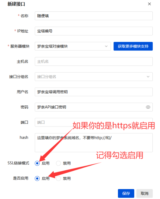 - 用户名:填写梦奈宝塔调用密钥。
