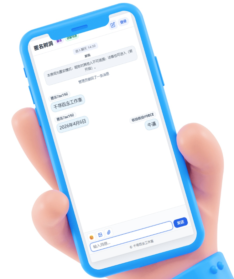 千寻聊天室是一款基于Web的实时多人聊天系统,支持多房间切换、匿名/访客模式,界面采用毛玻璃风格设计,适配移动端。管理员可管理用户、设置房间密码,支持快速部署与一键安装,适合校园、社区或开发者学习使用。