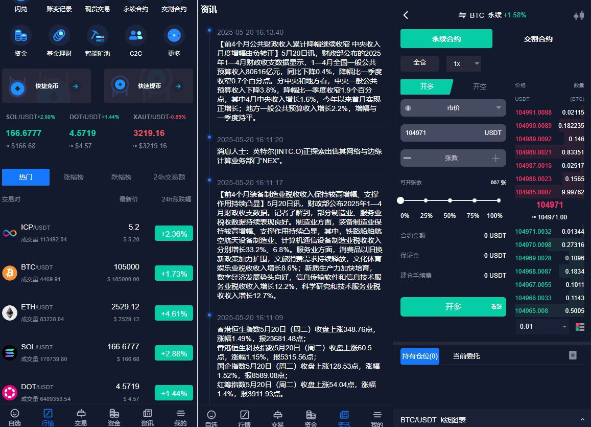 - 现货交易:支持区块链资产即时买卖